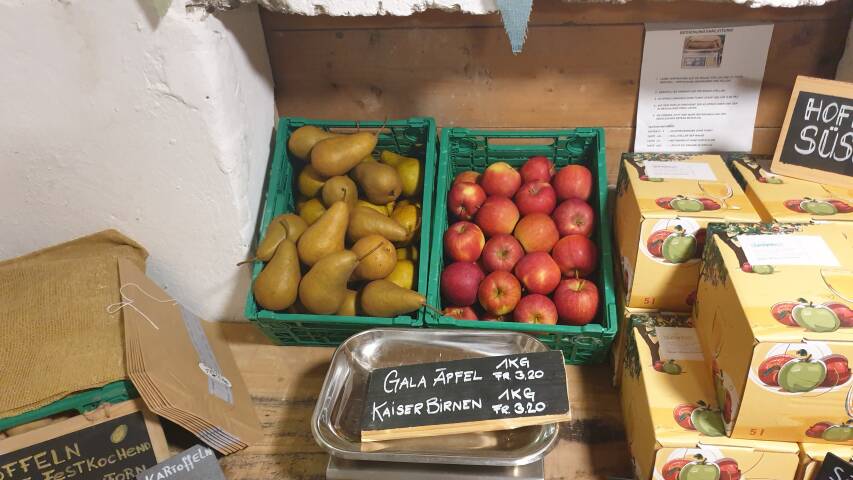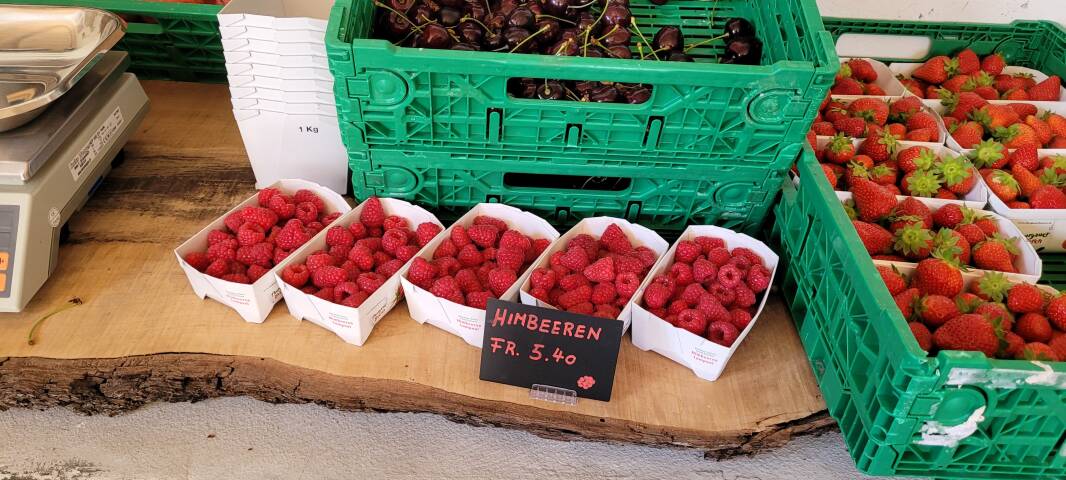 Entdecken Sie die breite Auswahl an Früchte, Beeren, Mehl oder tierische Produkte (Eier, Fleisch, Milchprodukte usw.). Bei uns erleben Sie saisonale Höhenflüge (Spargeln, Kirschen, Erdbeeren, Zwetschgen usw.) und finden gleichzeitig zu jeder Jahreszeit eine grosse Auswahl an Alltagsnahrungsmitteln, Geschenkideen und weiteren Spezialitäten.